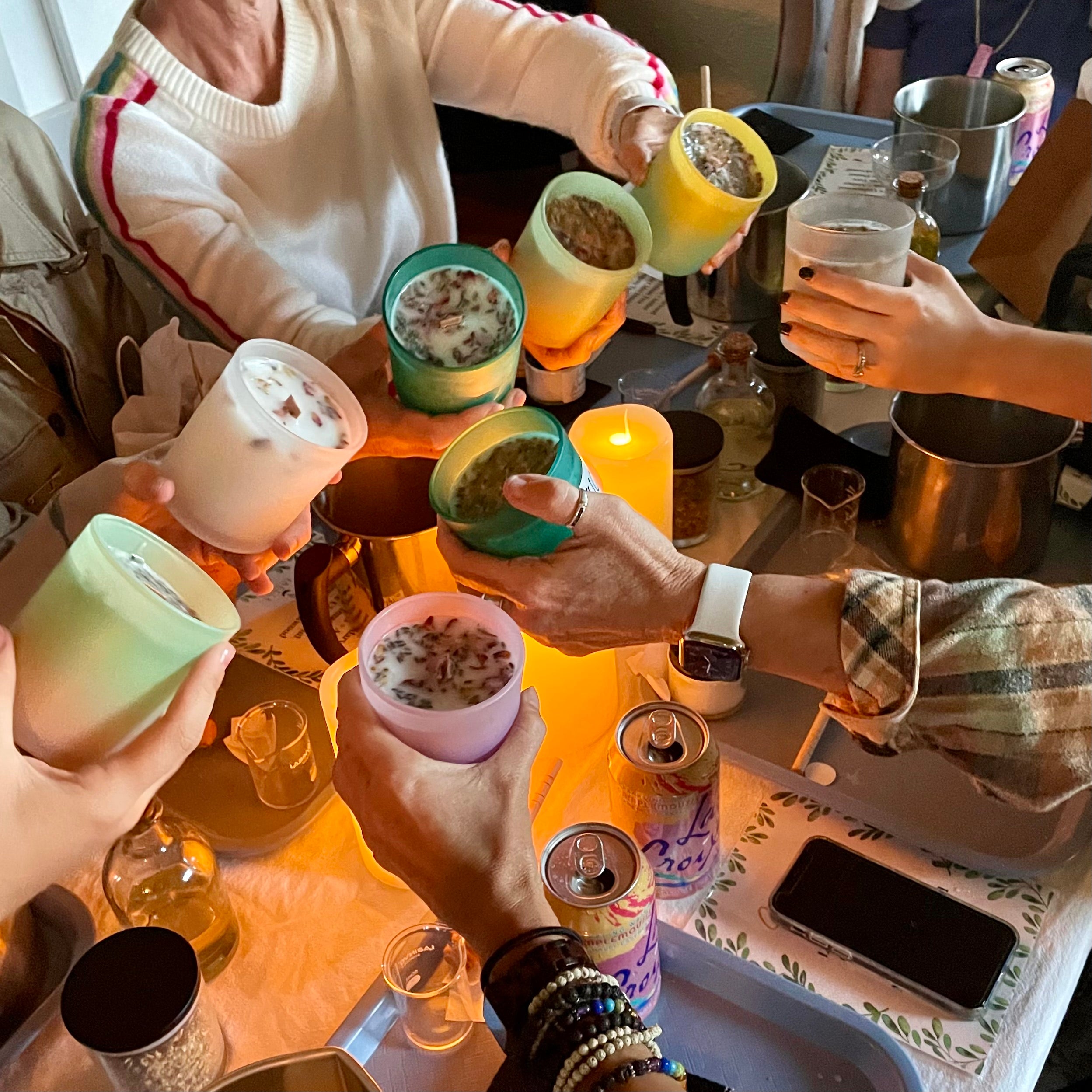 Whether you're celebrating a special milestone, planning a bridal shower, or fostering team spirit through unique office bonding activities, our candle making classes are the perfect touch to elevate your next event.